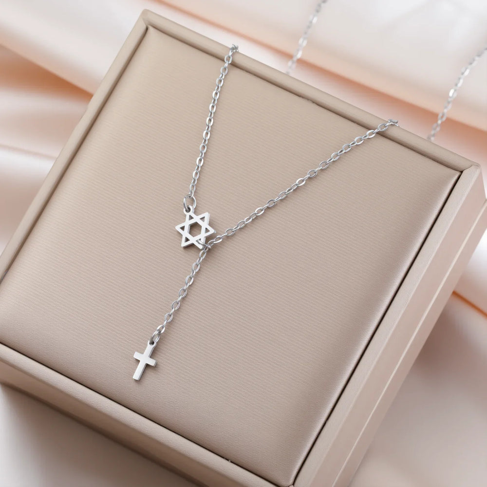 Stainless Steel Star & Cross Necklace
